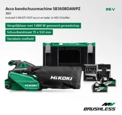 ![HiKOKI SB3608DAWPZ Accu Bandschuurmachine | 36 Volt 2,5 Ah Li-Ion | +HSC [SB3608]](https://www.powergeartools.com/wp-content/uploads/2025/02/HiKOKI_SB3608DAWPZ_SB3608-247x247.webp)