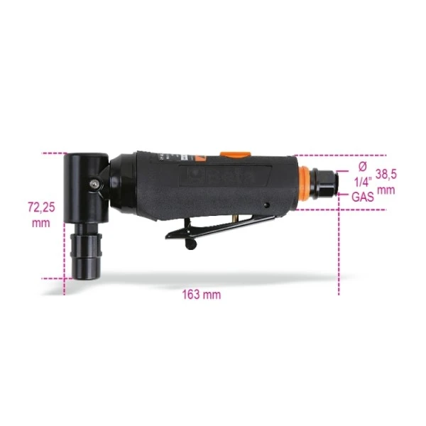 - De 90 graden gebogen kop en de geheel in kogellagers opgesloten as garanderen accurate werkzaamheden in kleine ruimten