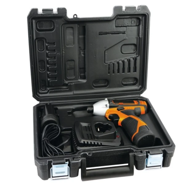 Omschakelbare slagschroevendraaier 12 Volt, ideaal voor klussen in kleine ruimtes, biedt een hoog koppel (80 Nm), bediening met enkel hand.