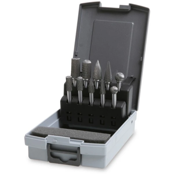 10-delige set conische frezen, vervaardigd uit hard metaal, kruissnede HM4, 8 – 12 mm