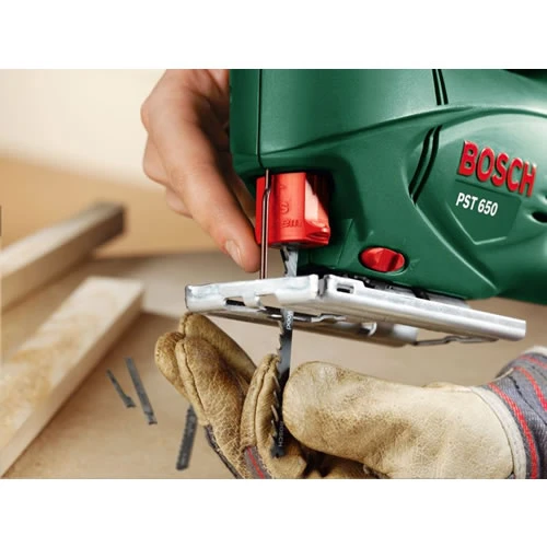 De PST 650 wordt vooral gebruikt bij eenvoudige zaagklussen in hout, metaal of aluminium. Het is een gemakkelijk te hanteren gereedschap waarmee zuiver kan worden gezaagd. Het maakt niet uit of er laminaat moet worden gelegd, plinten moeten worden ingekort of een schapplank op maat moet worden gezaagd. Met de praktische PST 650 wordt het zagen moeiteloos en comfortabel. Over het geheel bekeken horen toepassingen in hout tot de hoofdtoepassingsgebieden van de PST 650. Hier zijn zaagdieptes tot wel 65 millimeter mogelijk. Bij materialen als aluminium of metaal ligt de maximale zaagdiepte bij tien resp. vier millimeter. Met de krachtige 500-watt-motor worden zelfs zware klussen met gemak geklaard.