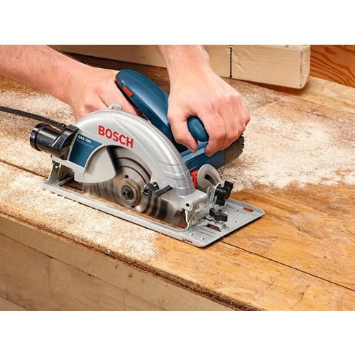 Professionele cirkelzaag GKS 190. Het compacte design, het lage gewicht van nauwelijks 4,2 kg en de verbeterde handgreepergonomie garanderen een uitstekende handhaving bij het op maat zagen van dakgebinte bijvoorbeeld. De motor van 1400 Watt biedt kracht te over voor een snelle werkprogressie, wat een groot voordeel is bij het zagen van massief hout. De gestanste metalen basisplaat en de beschermkap uit gegoten aluminium geven de machine de nodige robuustheid voor het ruwe werk op een bouwwerf. De GKS 190 Professional is de cirkelzaag bij uitstek voor dagelijks gebruik door gekwalificeerde bouwvakkers, zoals schrijnwerkers, dakleggers, bouwers van expostands en specialisten in winkelinrichting.