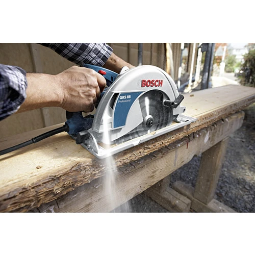 De Bosch Professional cirkelzaag GKS 85 is bedoeld voor het zwaardere werk. Hij is supersterk en kan dus grotere zaagdiepte aan. De machine heeft zelfs een zaagdiepte van 85 milimeter en een hoge treksterkte door zijn 2200W motor.