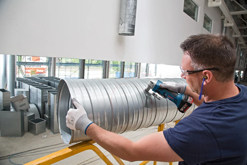 De 18V Plaatschaar voor flexibel knippen op de bouwplaats