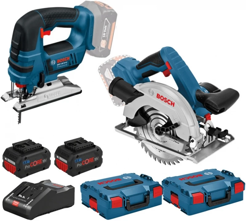 Bosch Professional GST18V-LiB + GKS18V-57G Decoupeerzaag + Cirkelzaag | 18V 8,0Ah ProCore | L-Boxx