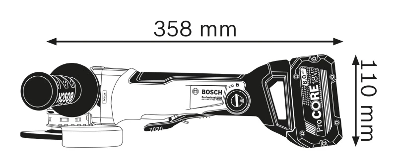 - Deze levert vermogen dat overeenkomt met een 1000 W slijpmachine met snoer dankzij de borstelloze motor en ProCORE18V-accutechnologie.