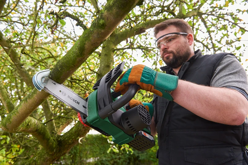 - Gestroomlijnd Bosch SDS-systeem maakt het mogelijk om zonder gereedschap de ketting te spannen en te wisselen