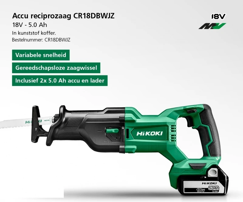 HiKOKI CR18DBWJZ Accu Reciprozaag | 18 Volt 5.0 Ah Li-Ion | Koffer