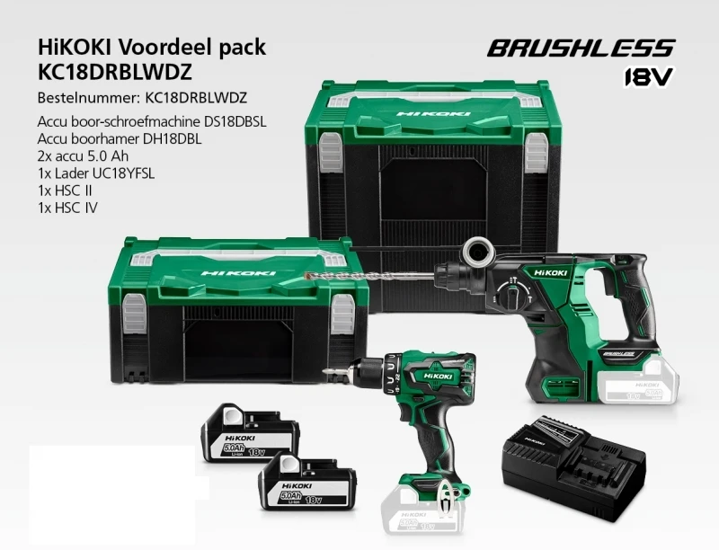 ![HiKOKI KC18DRBLWDZ Combopack DS18DBSL + DH18DBL | 18 Volt | 5.0 Ah | +Systainer [KC18DRBL] 4 HiKOKI KC18DRBLWDZ Combopack DS18DBSL + DH18DBL | 18 Volt | 5.0 Ah | +Systainer [KC18DRBL] - Afbeelding 2](https://www.powergeartools.com/wp-content/uploads/2025/02/HiKOKI_KC18DRBLWDZ_KC18DRBL_WDZ_ext_2.webp)