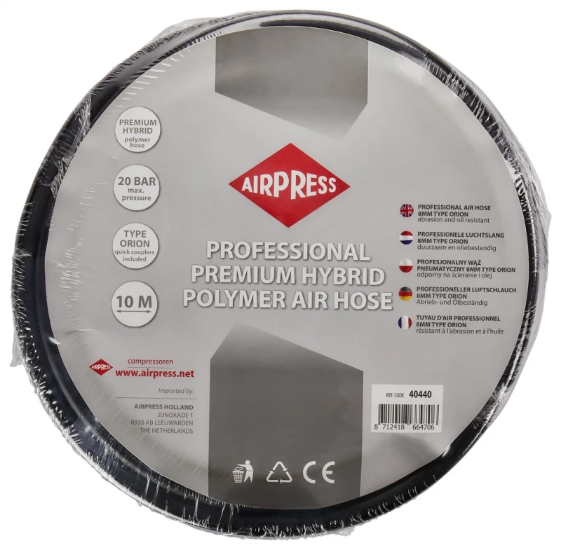 - Luchtslang met een lengte van 10 meter en een diameter van 8 mm.