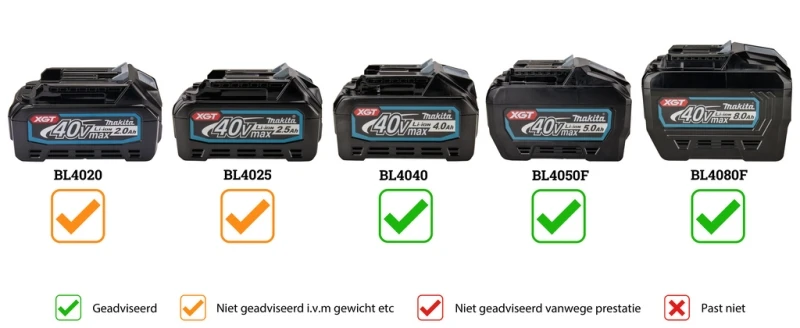 - Gewicht met XGT BL4080F accu : 6000 gram