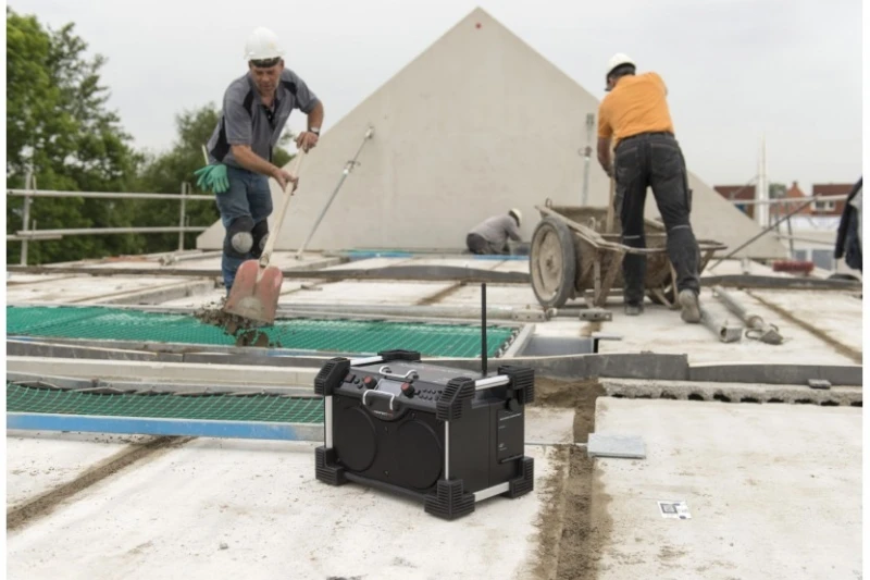 De Baas. De grootste en krachtigste bouwradio ooit gemaakt. Twee krachtige woofers en tweeters, aangedreven door een premium versterker, produceren een indrukwekkend geluid. Klinkt ook mooi op laag volume maar is vooral geschikt voor iedereen die een groot terrein vol wil zetten met het beste geluid
