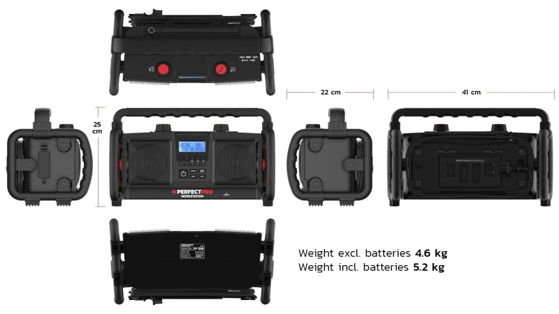 PerfectPro WORKSTATION Bouw Radio | Netstroom | Bluetooth | FM / DAB+ | USB