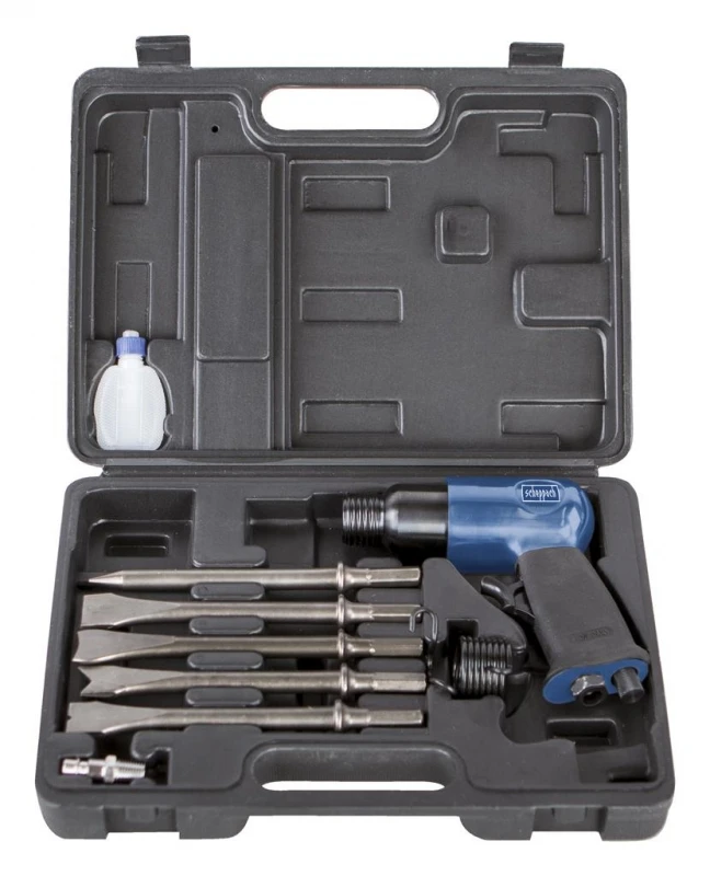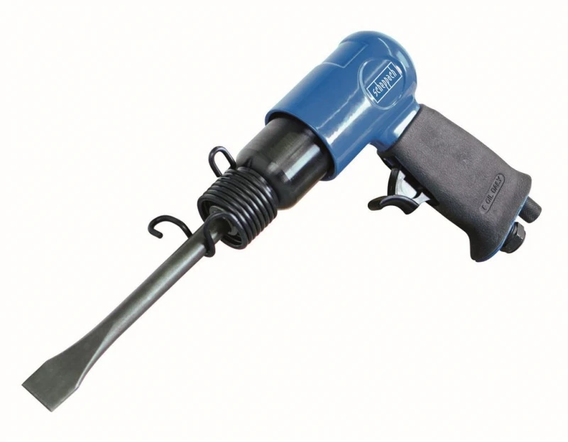 Scheppach boorhamer werkend op lucht geleverd als complete kit. Ideaal voor het snijden van metaalplaat, het verwijderen van fittingen en klein sloopwerk.