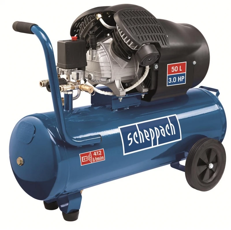 Scheppach HC53DC luchtcompressor met een tank van 50 liter. De compressor heeft een dubbele cilinder. De compressor levert een fantastische combinatie van prestatie, veiligheid en prijs/kwaliteit verhouding.