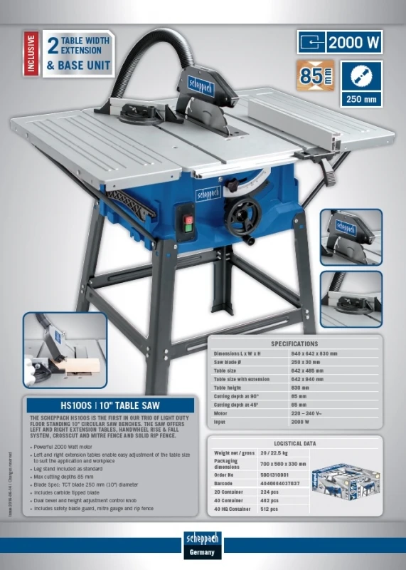 ![Scheppach HS100S Tafelcirkelzaag | 2000 W | Tafel 642 X 485 Mm | 250 X 30 Mm [5901310901] 6 Scheppach HS100S Tafelcirkelzaag | 2000 W | Tafel 642 X 485 Mm | 250 X 30 Mm [5901310901] - Afbeelding 4](https://www.powergeartools.com/wp-content/uploads/2025/02/Scheppach_HS100S_5901310901_ext_8.webp)