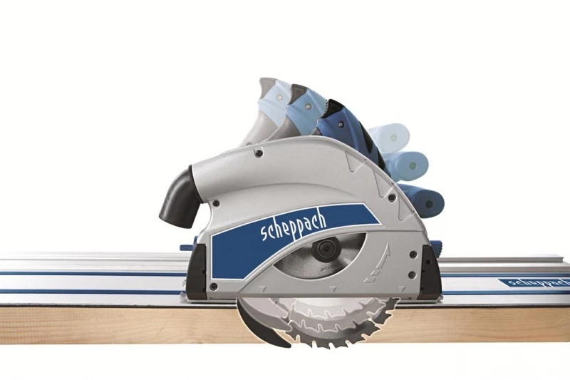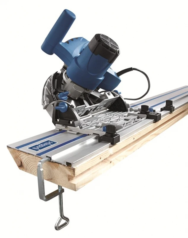 PL55 invalzaag van Scheppach, inclusief 2x geleiderail 700 mm = 1400 mm. De combinatie van de Scheppach PL55 en de geleiderail creëert een systeem dat meer precisie genereert. Traditionele, elektrische zagen zullen nooit de resultaten halen van deze zaag.