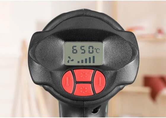 Dit krachtige 2000 Watt heteluchtpistool heeft een variabele temperatuurinstelling tot 650 gr C en vijf luchtstroominstellingen tussen 250 en 500 l/min, zodat u de beste instelling voor elk klus kunt kiezen. Een eenvoudig te gebruiken LCD-display laat duidelijk de gekozen temperatuur- en luchtstroominstellingen zien