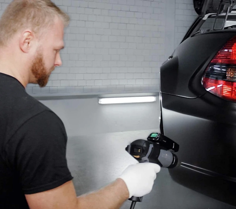 - Het 2200 W heteluchtpistool HG 2120 E als Carwrapper-Set met Temperatuurscanner HL Scan.