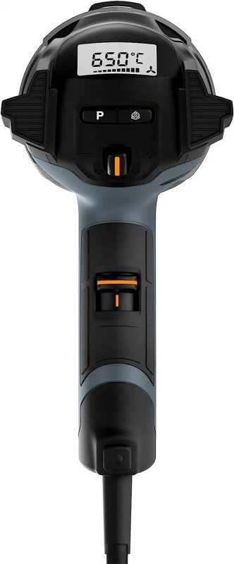 Meer power. Meer warmte. Langere levensduur. Het sterkste heteluchtpistool van STEINEL is uitgerust met een sterke borstelloze motor met een erg lange levensduur(10.000 uur). De temperatuur (50-700 grC) kan m.b.v. een joystick met een hand in stappen van 10gr C worden geregeld en altijd van het overzichtelijke en informatieve lcd-display worden afgelezen. Net zo eenvoudig is de regeling van de luchthoeveelheid tussen 150 en 500 l/min. evenals het selecteren van de in totaal vier individuele programma’s.